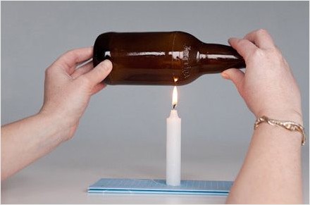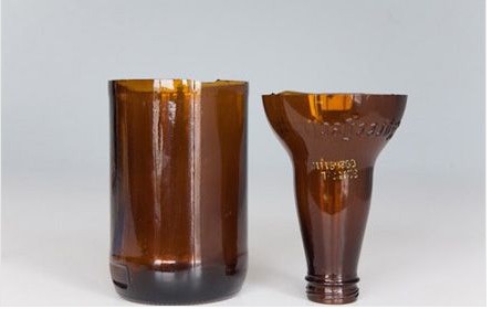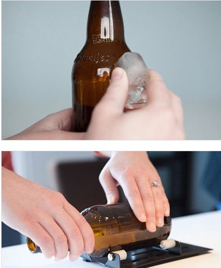 然后三是用火加熱瓶子,最后用冰領(lǐng)冷卻,借助熱脹冷縮使玻璃沿著第二步驟的裂口裂開,然后把不平整的瓶邊用砂子磨平。一個酒瓶花器就做好了!