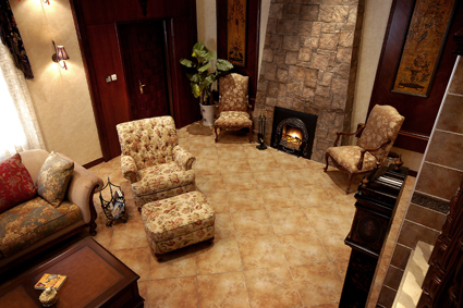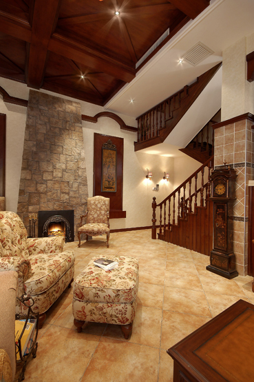 如前所述,此空間定性為美式風(fēng)格.那么用材便有了范圍—-磚,紙,木,布藝等.便捷,隨意,休閑是美國(guó)人居最為強(qiáng)調(diào)的,于是,此空間也不無(wú)例外.如客廳和餐廳極為突出,整個(gè)環(huán)境決不刻意賣弄性的作無(wú)畏裝點(diǎn).當(dāng)中強(qiáng)調(diào)交通流線的合理,起居休閑時(shí)的舒適和諧,功能布置的實(shí)用于方便.為了提煉出整個(gè)空間的層次與文化積淀,用才上,特別是對(duì)于磚的取材,考慮的都是仿舊仿古系列,好像在訴說(shuō)這是一個(gè)家族一代一代輝煌的生活傳承.縱閱整個(gè)別墅,窗簾布藝在此當(dāng)中起到了不可忽視的作用,從最基礎(chǔ)的為每個(gè)特性空間調(diào)節(jié)人居生活認(rèn)為合適光度之外,他們自身獨(dú)特的花紋,掛式以及色感為這個(gè)以美式定義的空間增添出浪漫,個(gè)性,舒適大氣的視覺(jué)美感.在家具陳列選擇上,強(qiáng)調(diào)整體風(fēng)格的統(tǒng)一—大氣,隨意,輕松.每個(gè)個(gè)體家具表現(xiàn)的氣質(zhì)同樣非常獨(dú)到,同時(shí)也非常配合的表現(xiàn)出懷舊與人文傳承的個(gè)性.