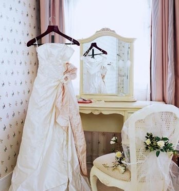 將那唯美的婚紗立在鏡前,將所有的裝飾物呈現(xiàn)在梳妝臺上,讓新娘的裝扮更加從容。
