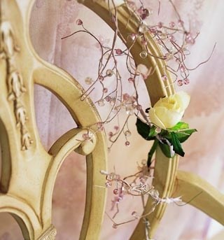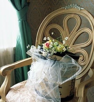 梳妝區(qū)是一個(gè)女孩即將蛻變成美麗新娘的地方。所以,在整個(gè)區(qū)域的布置上,不必出現(xiàn)任何奪目的色彩,因?yàn)樾履锉旧砭褪钱?dāng)天最矚目的焦點(diǎn)。梳妝區(qū)的關(guān)鍵是要給美麗的新娘營造出一種安靜、甜美的氣氛,能讓她自信、從容地將自己裝扮得美麗、動(dòng)人。新娘的裝飾物已經(jīng)非常繁多,所以這個(gè)區(qū)域一定要布置得盡量簡潔,物件擺放上不可過于繁雜,而色彩也以清淡為最佳。這里值得注意的是,在梳妝區(qū)要將新娘要用的裝飾,有序地?cái)[放在明面上,不必將其裝在包裝盒內(nèi),一定要有包裝的物品,可以露出里面部分物品,有助于新娘找尋,使整個(gè)裝扮過程更加從容,也可大大縮短裝扮的時(shí)間。