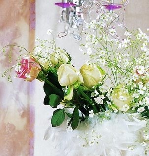 西式婚慶,餐廳可以較多地?cái)[放些鮮花,畢竟鮮艷的色彩與鮮花的喜人,可以大大提升人們用餐時(shí)的喜悅感。除了在餐桌中間擺放一個(gè)較大的花瓶,并插滿各色鮮花做主體之外,還有很多細(xì)節(jié)可以用鮮花點(diǎn)綴。在西式餐桌擺放禮儀中,習(xí)慣預(yù)先將餐具整齊地?cái)[放在餐桌上。因此,可以在菜單上插上小花、用花朵制做餐巾環(huán)、用綠葉制做 餐巾墊等。另外,餐桌椅同樣是鮮花施展美麗的地方,將一些細(xì)軟的小花裝扮其上,或者用一些花卉纏繞于椅子上,能制造出更多優(yōu)美、浪漫的婚慶感。
