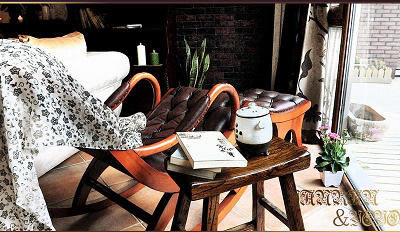 搖椅和壁爐旁邊的小書架都是從外貿倉庫淘的