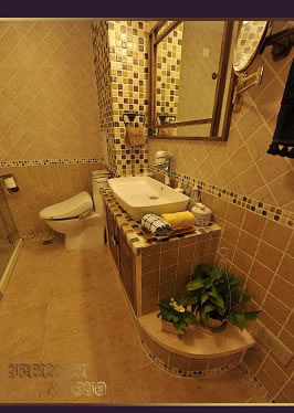 仿古磚搭配仿古馬賽克,這個是先和設計師選了馬賽克,然后再另外選的磚。效果還不錯。