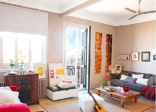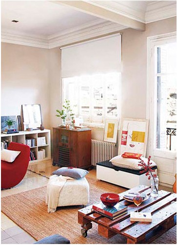 做舊的矮柜/茶幾簡潔大氣,它的存在無形中使得客廳帶點懷舊/復古味,而帶有滾輪的設計及其簡單,且不受空間限制,讓客廳顯得更加靈動。