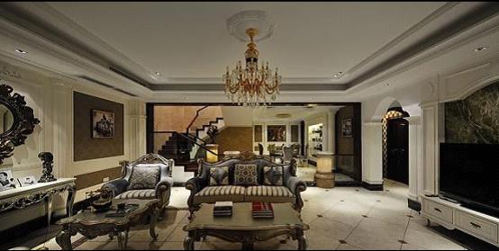 整個(gè)空間用圓拱柱式來代替了門的運(yùn)用,開闊了視野,拉伸了整個(gè)空間,更顯大氣。端景的設(shè)計(jì)很是精彩,和壁爐處的裝飾鏡有異曲同工之妙。
