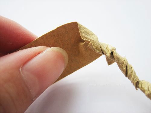 接下來呢把這紙條朝一個方向擰,擰成紙繩。