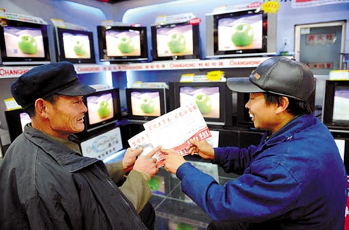 概要: 農(nóng)戶購(gòu)買彩電、冰箱、手機(jī)和洗衣機(jī)等國(guó)家指定的家電產(chǎn)品,可享受13%的財(cái)政補(bǔ)貼。省經(jīng)貿(mào)委、省財(cái)政廳日前聯(lián)合舉辦新聞發(fā)布會(huì),宣布“家電下鄉(xiāng)”廣東省工作啟動(dòng)。我省還將于2月10日在廣州番禺廣場(chǎng)拉開(kāi)家電下鄉(xiāng)啟動(dòng)儀式?! ∮浾吡私獾?,家電下鄉(xiāng)的財(cái)政補(bǔ)貼總額并不設(shè)上限,只要農(nóng)民愿意購(gòu)買這些受到財(cái)政補(bǔ)貼的產(chǎn)品,均將享受政策補(bǔ)貼。