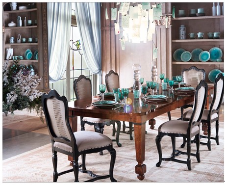 氣質(zhì)非凡的美式餐廳風(fēng)格--同樣是實(shí)木餐桌與歐式靠椅,在這樣的環(huán)境內(nèi)擺設(shè)著,卻透出不一樣的味道,華麗中帶點(diǎn)清新感,這莫過于湖藍(lán)色小裝飾點(diǎn)綴。而室內(nèi)的光線也尤為重要,光線的好壞可以直接影響到我們的食欲,就好比做菜一樣也要色香味齊全,用餐環(huán)境必定重要。