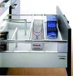 這種1/2抽屜很流行,可是直接擺放物品容易前后晃動,如果在抽屜屜幫處加裝上護(hù)欄和分隔架,那么就可以大大增加盛放物品的容量,而且無論放入多少瓶瓶罐罐,在抽屜內(nèi)它們都可以各司其位,不會顛倒破碎。