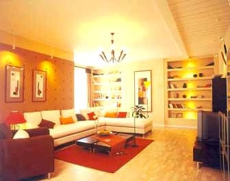 營(yíng)造暖洋洋的客廳,有時(shí)極為簡(jiǎn)單,把素淡的窗簾,換成色彩濃烈的織物,那簡(jiǎn)潔而強(qiáng)烈的幾何形色塊,就會(huì)點(diǎn)綴出一個(gè)充滿陽(yáng)光的空間。如果再配以紅色的布藝沙發(fā)和精巧的插花,那么整個(gè)客廳就形成了強(qiáng)烈的視覺(jué)沖擊,冰冷的感覺(jué)就會(huì)煙消云散。
