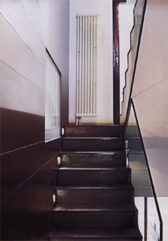 直梯具有簡約的直線造型,不帶有任何拐角,它方便行走,特別適合有老人,小孩的家庭。傾斜而上的直梯依墻而立,而樓梯旁邊的墻壁則成為最好的展示平臺,在這里可以懸掛一些畫框,也可以展示家庭成員的照片,單調的樓梯走廊也因此顯得情意濃濃;另外,還可以利用樓梯下有限的空間進行有效設計,作為各種儲藏之用。