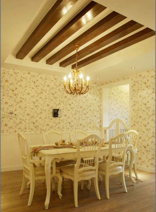 相比較而言,田園風格的壁紙比碎花沙發(fā)這類家具更得人心,也更顯大氣。