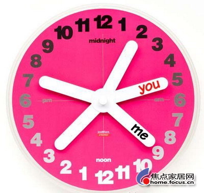 上榜理由:這是一個只屬于你們兩個人(You & Me )的掛鐘,沒有分鐘刻度,沒有傳統(tǒng)的時針、分針和秒針,只有24個小時刻度,還有幾個可以隨意涂鴉的白色指針,你倆可以在這些白色指針上寫或畫上對于你們來說最有意義的人、物或地方,這些白色指針也是象表針一樣在轉(zhuǎn)動的,很浪漫吧~~