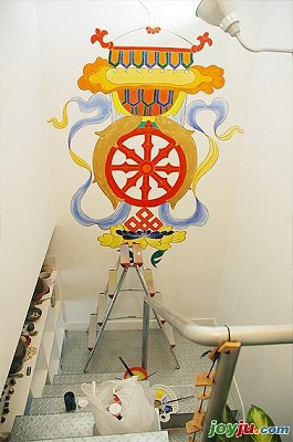 樓梯拐角處的自家"壁畫",蛋花了三天時(shí)間才完成的吉祥八寶圖~~~
