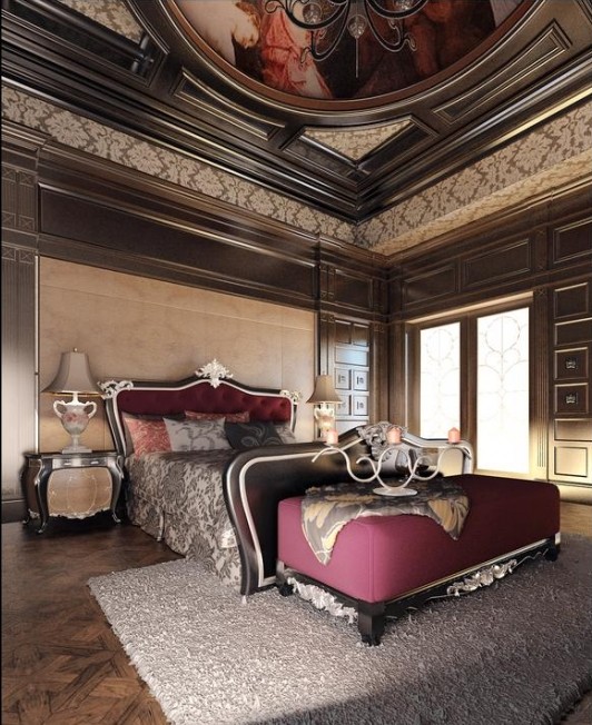 這個(gè)是主臥,抬眼及可看見房頂?shù)谋诋嬅垒喢缞J。