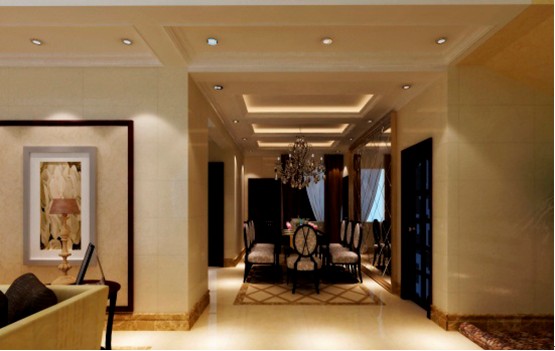 這是挑高的客廳,布置上是風(fēng)水學(xué)里最招財(cái)?shù)?,明亮寬敞??蛷d是體現(xiàn)整個(gè)居家裝修最重要的位置。我們?cè)诜桨柑幚砩喜捎盟У牡鯚?、拼花的地面、帶圖案的地毯以及帶紋樣的壁紙。這樣無一不散發(fā)出他的尊貴氣質(zhì)。米色系的大理石跟深色橡木的家私,組合成經(jīng)典的對(duì)比色系,既體現(xiàn)了家具的厚重、典雅,又不會(huì)讓空間感覺到過于沉重。墻面金鏡的運(yùn)用以及精致工藝飾品的擺設(shè),更加豐富了空間的層次,給人更加愉悅的視覺感受