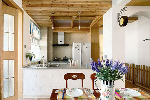 黑、藍(lán)色為水氣之色,嚴(yán)重克滅爐灶之火,易導(dǎo)致宅運(yùn)不旺,一般宜用輕淡而明亮的顏色,如白色、綠色等為主色調(diào),廚房的地面宜用深沉厚重的顏色。