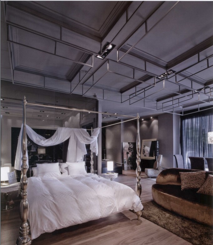 大氣而不俗的風(fēng)格定位,讓本案設(shè)計(jì)必須配合新古典主義的風(fēng)尚和簡(jiǎn)約寫意的風(fēng)格。室內(nèi)基本比較簡(jiǎn)潔,利用黑白兩個(gè)分區(qū)把新古典主義和現(xiàn)代風(fēng)格區(qū)分開來,深色玻璃讓兩個(gè)空間分開的同時(shí)又相互聯(lián)系。高貴而大氣是本案的核心品質(zhì),室內(nèi)設(shè)計(jì)必須努力做到這一點(diǎn),才能與之相一致。當(dāng)人站在深色的空間時(shí),遠(yuǎn)處淺色的空間也同樣吸引著你的視線。淺色空間里帶有金屬光澤的家具足以吸引人們進(jìn)另一個(gè)空間,這就利用了視覺心理,讓人們的視線在這個(gè)空間彼此交替。