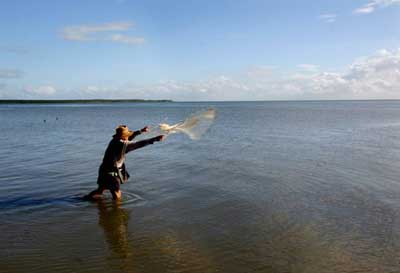 海明威的《老人與?!饭适卤尘笆窃诙兰o(jì)中葉的古巴。主角人物是一位圣地亞哥的老漁夫,配角是一個(gè)叫馬諾林的小孩。這位風(fēng)燭殘年的漁夫一連八十四天都沒(méi)有釣到一條魚(yú),幾乎都快餓死了;但他仍然不肯認(rèn)輸,而充滿著奮斗的精神,終于在第八十五天釣到一條身長(zhǎng)十八呎,體重一千五百磅的大馬林魚(yú)。大魚(yú)拖著船往大海走,但老人依然死拉著不放,即使沒(méi)有水,沒(méi)有食物,沒(méi)有武器,沒(méi)有助手,而且左手又抽筋,他也絲毫不灰心。經(jīng)過(guò)兩天兩夜之后,他終于殺死大魚(yú),把它拴在船邊。但許多小鯊立刻前來(lái)?yè)寠Z他的戰(zhàn)利品;他一一地殺死它們,到最后只剩下一支折斷的舵柄做為武器。結(jié)果,大魚(yú)仍難逃被吃光的命運(yùn),最終,老人筋疲力竭地拖回一副魚(yú)骨頭。他回到家躺在床上,只好從夢(mèng)中去尋回那往日美好的歲月,以忘卻殘酷的現(xiàn)實(shí)。