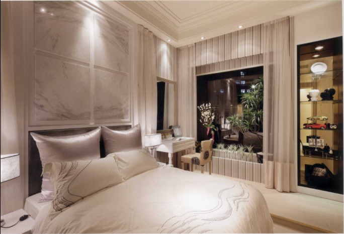 臥室,大氣的美式古典。私密空間確實(shí)夠大,這邊是小露臺(tái)旁邊還有著梳妝臺(tái),而另一邊……
