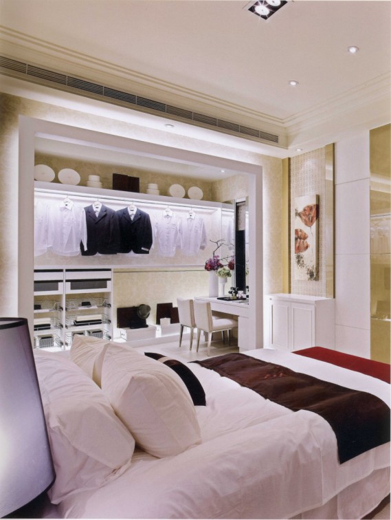 這一邊則是一個(gè)寬大的衣帽間在。衣帽間的出現(xiàn)就避免了衣柜的存在,也避免了收納家具的出現(xiàn)??偨Y(jié)本案,小編帶我們走完這個(gè)公寓大宅,設(shè)計(jì)師運(yùn)用透亮材質(zhì),層層串聯(lián)全室,同樣精準(zhǔn)掌握建材特性,規(guī)劃合宜的動(dòng)線、格局,心情詮釋居住者需求的美式新古典居邸。