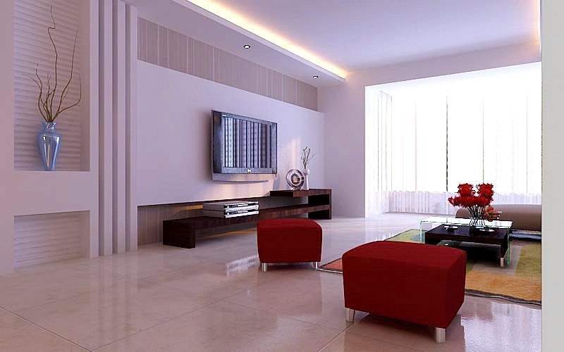 在功能方面,客廳是家品位的象征,體現(xiàn)了主人的品位,有時候朋友或者親戚到家里來做客,這也算是交友娛樂的場合,客廳的電視背景墻采用了簡單的石膏板造型,并做出凹凸的效果,石膏板中間做一個懸掛的臺面,上面放一個有干枝的裝飾瓶做裝飾。貼白色的波浪板做裝飾。電視墻上的豎紋墻紙既簡單又大方。線形的電視柜是密度板基層外貼胡桃木飾面板??蛷d的沙發(fā)采用的是紅白相搭配的布藝沙發(fā)。再配上玻璃搭配實(shí)木的餐幾,試想想,一家人都坐在布藝的沙發(fā)上聊天,看電視那是一個多么溫馨的場面!客廳的沙發(fā)背景墻只做了簡單的處理,用細(xì)木工板貼上黑色的亞克力板,做了一個懸掛的臺面,上面可以放裝飾畫等,一些裝飾品非常實(shí)用。