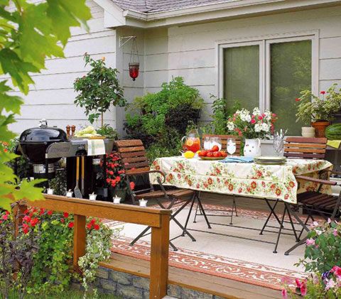 餐具:田園風格的桌布最適合與花卉圖案的粗陶餐具相搭配。使用一些家傳的古董,比如插滿玫瑰的罐子或是泛黑的托盤,能讓你的露臺看起來更有個性。