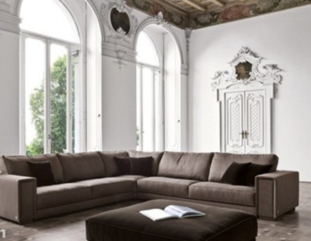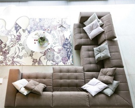 略帶有一點中國古典風格的歐式客廳,錯落的“L"型棕色沙發(fā)搭配白色的靠枕,時尚而又溫馨,一塊雅致的印花圖案地毯,清新淡雅。