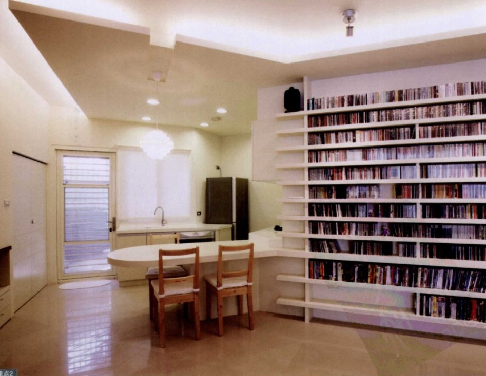 屋主收藏大量的CD片,于是設(shè)計師將CD片從收藏品躍升為家中的擺飾,讓CD片收納架成為客廳墻面最搶眼的裝飾,同時也考慮到屋主隨時取用的便利性。