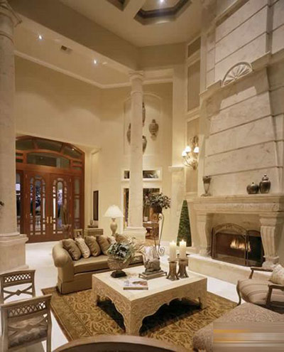 雕飾精美的柱子和由多個(gè)拱形相連形成的門(mén)廊、以及燈光溢彩的樓梯間都相當(dāng)吸引眼球。當(dāng)你走進(jìn)這座居住面積達(dá)到5,816平方英尺的豪華別墅時(shí),每一處都可看出設(shè)計(jì)師的獨(dú)具匠心。