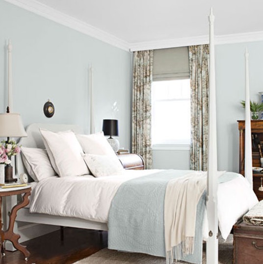 整個臥室裝飾著布藝,布藝搭配白色調的木質床架,以搭配墻面和薄毯的淡藍色,這樣的居室自然變得明朗。再裝飾著古樸厚重的原木家具,深色的實木地板讓房間不會顯得輕飄。