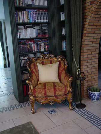 我家總體上來說是一個希臘的調子,只有電影房不一樣,因為同一種風格視覺容易疲勞,所以變化了一下。
