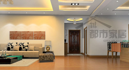 進(jìn)入房中,一眼望去是一片淺米色世界,柔和溫暖、儒雅淡定,一看就是人到中年后才會(huì)選擇的生活情調(diào)。入戶門的正上方有一個(gè)圓形的小吊頂,寓意著一家人的生活吉祥圓滿。