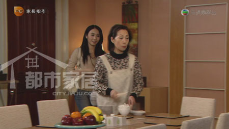 首先當然是看看客廳了。黎姿一家算得上是香港的小康之家,卻還達不到大富大貴,因此從客廳的布置就可以看出來,很實用很生活化,沒有一點奢華的影子。棗紅條絨布沙發(fā)搭配造型簡單的木茶幾。其實港式家居的內容真的很簡單,但效果看上去卻非常飽滿,這主要是靠軟裝起作用,例如地毯、沙發(fā)罩、抱枕和窗簾……軟裝里,尤其是布藝可以賦予家柔軟的質感和飽滿的層次感,這樣的裝飾理念已經流行了很久,但是在內地卻還不多見。