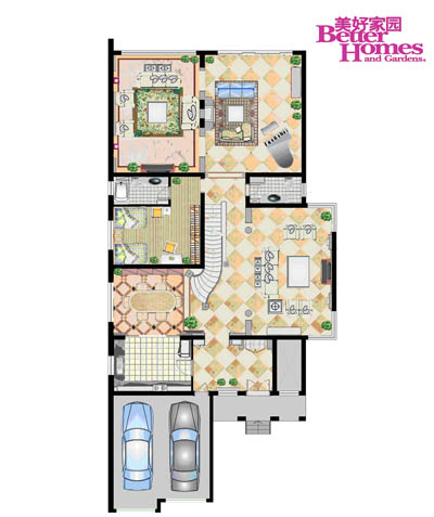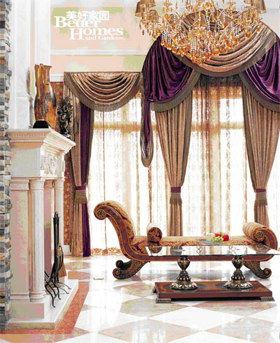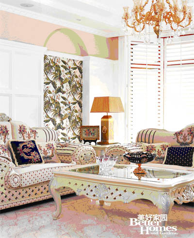 圖1:客廳的硬裝基礎(chǔ)氣質(zhì)硬朗,所以在家具的造型、壁紙的圖案、窗簾的形式中大量地運(yùn)用柔美優(yōu)雅的曲線破解, 平衡了橫平豎直的硬板。在不動聲色中達(dá)到視覺平衡、以柔克剛的效果。