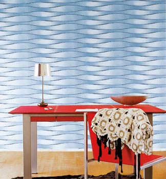 這類壁紙不論采取什么工藝或材質(zhì),目的都很明確:讓墻紙無論在視覺上還是觸覺上都更加立體。最簡單的方法是采用PVC加發(fā)泡劑或其它成分貼于紙底上,制造出要追求的各種紋理;較為復(fù)雜的方法是采用介于壁紙和涂料之間的新型墻面裝飾材料——墻基布,以特有的豐富肌理,配合墻漆,展示出獨特的三維立體效果,從而脫離了傳統(tǒng)墻面簡單的色彩搭配,更為喜愛自己動手的人增添了許多DIY的樂趣。