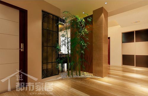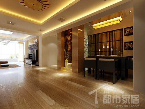 上圖中的兩盞大燈是一大特色,首先要看一下地板的顏色,這是一種深黃色系花紋的木地板,再來看兩盞大燈,設(shè)計(jì)師告訴都市家居記者:“這兩盞燈是仿舊羊皮效果的燈具,目的就是和地板的色彩、樣式相呼應(yīng)。”同樣的彩色,卻傳遞給人亦新亦舊的強(qiáng)烈反差感。
