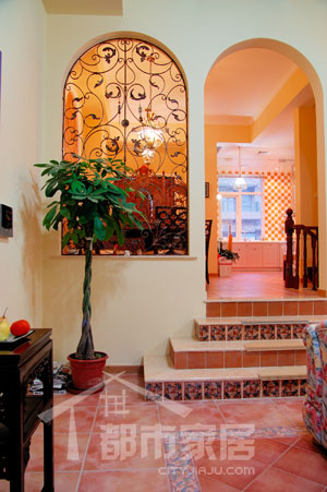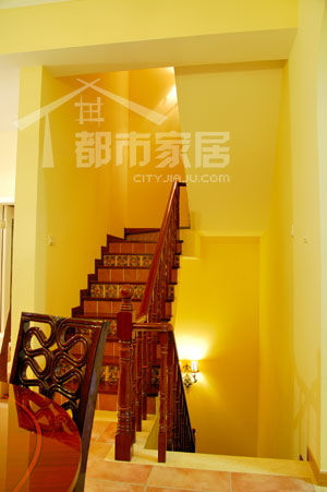 小編還注意到餐廳正對的樓梯很有特色,間隔的花磚鋪貼讓平凡的樓梯也變得花樣百出。設計師介紹說:“這種用花磚鋪貼樓梯的辦法在地中海風格里很常見。我用的是一層素色與一層花色相搭配,還可以用不同的兩種花色相搭配,那樣看起來會更加花哨一些?!闭嫫?!學習了,以后小編也要這樣搭配。