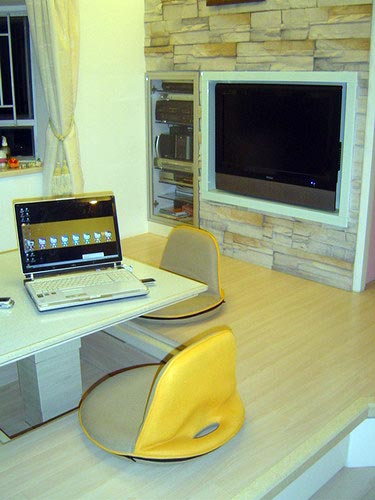 用餐工作的時候將它升起,一個小桌子就出現了。非常適合小戶型的經典設計
