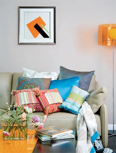 點(diǎn)睛之筆:彩條靠墊 呼應(yīng)沙發(fā)