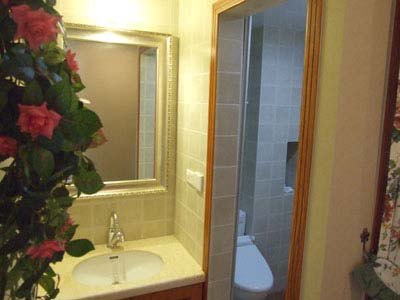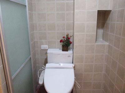 看清楚了,原來這里面是一個衛(wèi)生間,據(jù)主人講,原來這里是一面墻,光線和結(jié)構(gòu)都非常不好,于是充分發(fā)揮他的聰明才智,又是請教師傅,又是上網(wǎng)查資料,方案做了一個又一個,最后決定把墻做成了窗欞的樣子,這樣既好看又光線通透,這實在是太有創(chuàng)意了,廣大正奮戰(zhàn)的裝修一線的網(wǎng)友不妨偷學(xué)這一招,絕對有意想不到的效果。