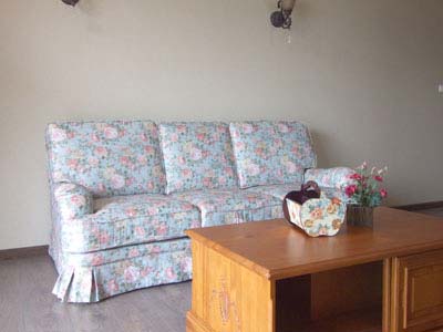 富有鄉(xiāng)村氣息的沙發(fā)獨自占據(jù)一個角落。