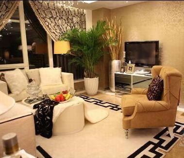 概要: 這套房子在整體裝修設計上并沒有花費太多的功夫,天花板和地面均以淺咖啡色為主調,墻面也只是貼上一層淺咖啡色的花紋墻紙,空間的視覺效果重點突出在擺設上,以歐式為主基調,典雅、奢華、時尚水晶吊燈、玻璃餐具,清透的質地減少了空間的厚重,增添幾分華麗感。頗具東方元素的地毯將客廳與餐廳清晰地劃分開,巧妙地實現(xiàn)了分而不斷,絲毫無損房間的整體、連貫,讓房間顯得大氣、寬敞。