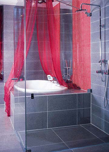 據(jù)介紹,L形拉門的開口可分為直角和單面進入兩種,選擇直角進入可以更有效地利用浴室面積,擴大使用率;而圓弧形的浴缸則更加美觀,還可以充分利用一般衛(wèi)浴設計不好處理的轉角區(qū)域。