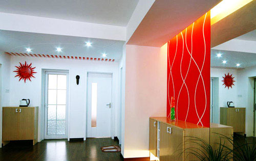 5、玄關(guān)一般不要緊挨窗戶,在玄關(guān)處可配置較大的吊燈或吸頂燈作主燈,再添置些射燈、壁燈、熒光燈等作輔助光源。也可以運(yùn)用一些光線朝上射的小型地?zé)魜?lái)做裝飾和點(diǎn)綴。