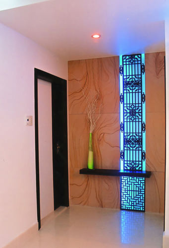 2. 客廳玄關(guān)的采光宜明不宜暗 ,而大部分住宅的玄關(guān) ,都沒(méi)有自然光源 , 因此在采光方面必須多動(dòng)腦筋。除了間隔宜采用較通透的磨砂玻璃之外,客廳玄關(guān)大多沒(méi)有室外的自然光 , 便要用室內(nèi)的燈光來(lái)補(bǔ)救 ,例如安裝燈之類的。