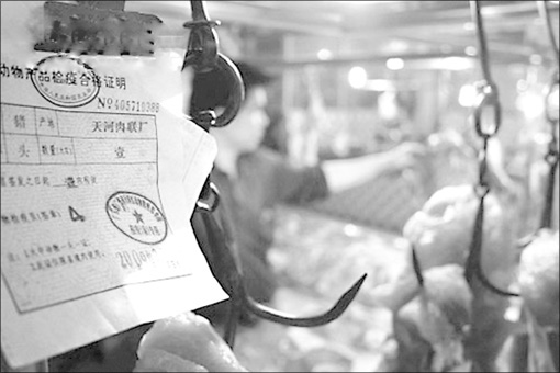 梁經(jīng)理告訴記者,該市場平時一天進(jìn)場的生豬3000頭左右,17日晚,批發(fā)商運來兩批豬,并出示了《檢疫合格證》,這兩份造假的檢疫證都來自湖南,是在當(dāng)?shù)貍卧斓?,?dāng)時檢查員未能察覺?!澳桥i是晚上來的,當(dāng)班的可能沒注意到檢疫證也有假的?!绷航?jīng)理說。