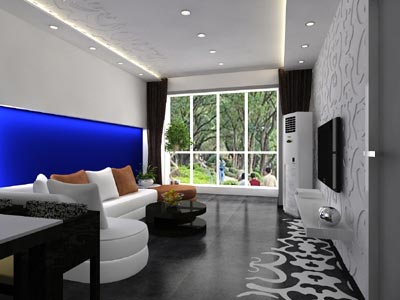 相信大家都會(huì)覺(jué)得,乍一看客廳沙發(fā)背景墻的用色還真夠大膽,設(shè)計(jì)師對(duì)此有什么說(shuō)法呢?他解釋道:“我自己也想過(guò)用這樣夸張的顏色,業(yè)主可能不好接受,但我最終還是決定了這樣來(lái)做。因?yàn)榭蛷d的空間比較狹窄,從沙發(fā)到電視墻之間也就三、四米,因此沙發(fā)背景墻不可再做立體造型或者復(fù)雜的圖案了,于是我就做了這么一個(gè)相當(dāng)簡(jiǎn)單的墻面造型,為了不使它太過(guò)單調(diào),我只有在顏色上凸顯它的裝飾效果。同時(shí)藍(lán)色和白色之間起的對(duì)比也使空間更有層次?!?/FONT>