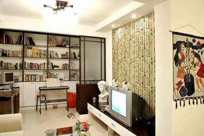第九,可在客廳角落以簡單的桌椅營建一個工作空間,再以屏風(fēng)來遮擋桌椅。