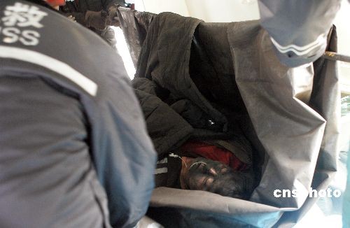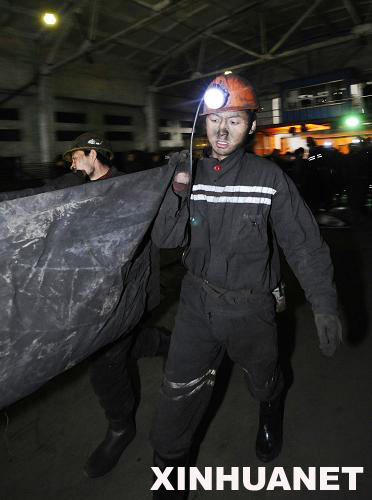 2月22日山西焦煤集團屯蘭煤礦發(fā)生瓦斯爆炸事故,救援人員抬出一具遇難者遺體。新華社記者 燕雁攝